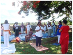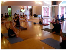 Next comes the practice of asanas or physical postures. As the student moves into a vinyasakrama (the intelligent positioning of postures that flow into one another) the emphasis is on moving the body and breath with awareness to awaken the potential energy and the innermost intelligence present in every cell of the body. Students experience a deep cleansing, healing and rejuvination as the physical and psychological toxins get washed away from the system.