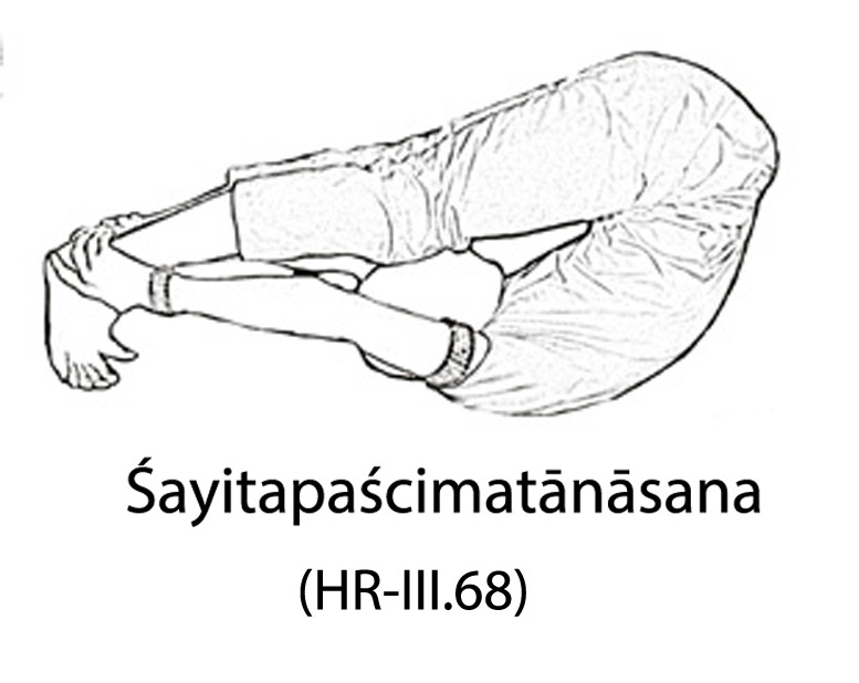 Translation : Lie on the back and do pascimatanasana to form sayita-pascimatanasana